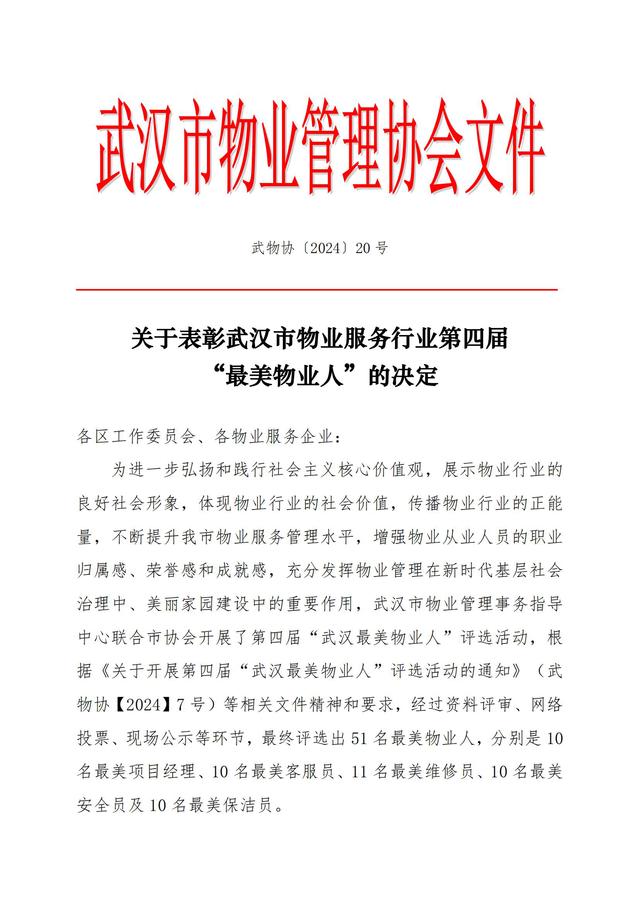 會上舉行了武漢市物業服務行業第四屆“最美物業人”頒獎盛典,展示和弘揚武漢市物業行業的良好社會形象和價值,億優物業公司工程維修部維修員李魁獲“最美維修員”榮譽稱號。據悉,本次活動共有96名“最美物業人”入圍,經過資料初審、網絡投票、社會公示等環節,在全市物業行業中最終評選出51名“最美物業人”,其中“最美維修員”11名。