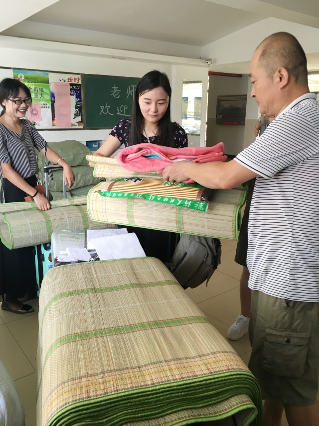 公寓管理員為培訓學員發放生活用品