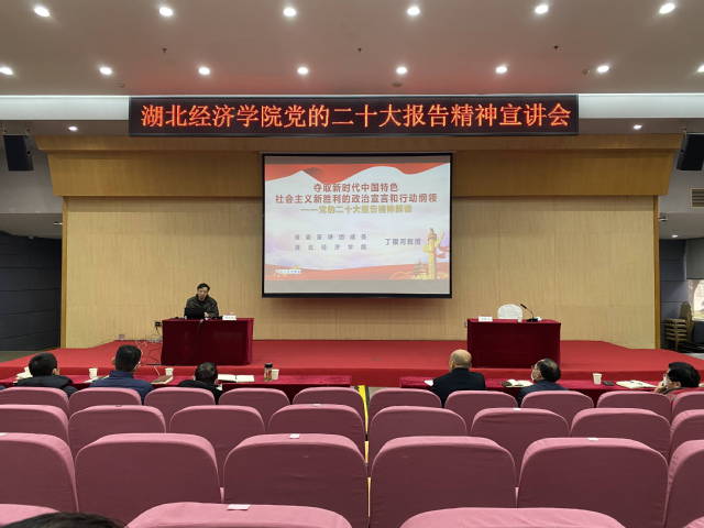 本網訊(通訊員 鄧金玲)為深入學習宣傳貫徹黨的二十大精神,推動黨的二十大精神深入基層,落地生根,2023年1月5日,馬克思主義學院副院長丁銀河教授在大學生活動中心二號報告廳作黨的二十大精神專場宣講報告會,億優物業公司黨總支黨員及中層正副職共計28人參加。