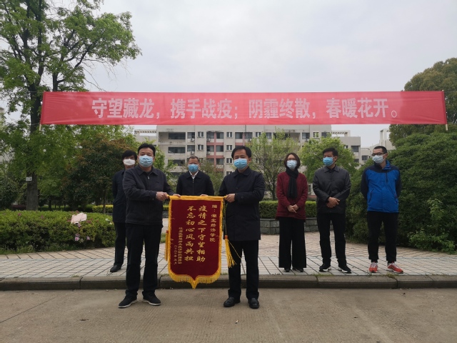 熊俊向學校贈送錦旗。江岸區向學校捐贈了價值37萬余元的物資,董仕節向江岸區頒發捐贈證書。熊俊與溫興生共同為醫護人員頒發紀念證書。