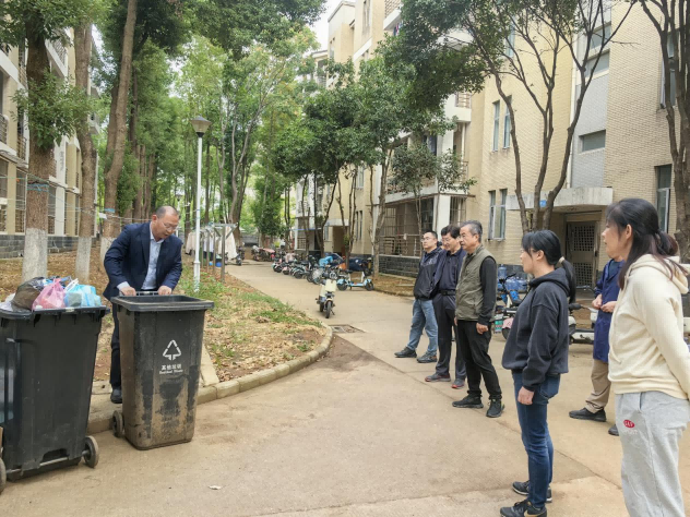 10月22日,公司領導及相關部門負責人前往桂苑學生公寓現場調研,詳細了解學生生活習慣,確定學生生活垃圾桶投放點位,制定改造方案,提高垃圾集中收集效率,減少蚊蟲滋生,提升學生生活品質。