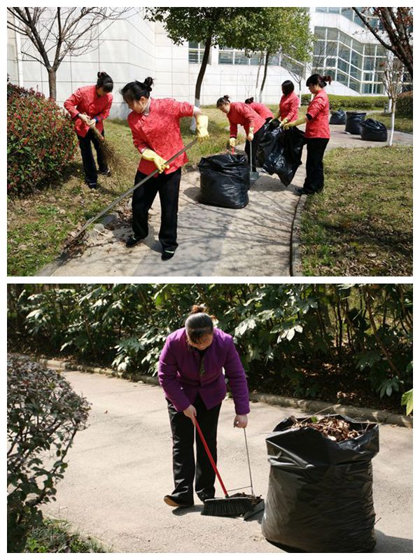 3月12日中午,在中心執行總經理的帶領下,中心員工自發義務勞動,對中心專家樓、廚房管理區、大廳前門的環境衛生進行了不留死角的清理、打掃;對妨礙綠化美觀的枯枝爛葉進行清除、修整;對破壞綠化環境亂搭、亂建和利用綠化帶種菜現象進行整治、修復;松整樹木土壤。