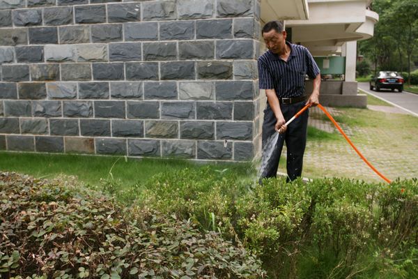 7月的三伏天,地表溫度高達四五十度,整個地面就像一個大烤爐,家屬區(qū)綠化帶植物掙扎在枯死的邊緣。為此,公司投入大量人力,購買幾百米塑料管,全力抗旱。家屬區(qū)綠化工們伴著晨曦走進綠化從中,他們分工協(xié)作、各司其職,有的在精心修剪草坪綠籬,有的在認真定時澆灌植物,有的在除蟲打藥,全力投入到抗旱保苗,確保植物安然度夏的艱巨工作中。有過多年綠化養(yǎng)護經(jīng)驗的余師傅說:“現(xiàn)在這種高溫天氣,每天至少要保證植物要‘喝’一次水,這樣才能保證植物在惡劣天氣下的存活率”。