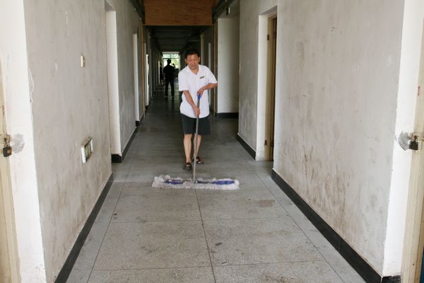 每年的暑期是億優(yōu)公司維修最繁忙的兩個月。“已經(jīng)習慣了,每年如此,衣服從來沒有干過,但不敢歇著,維修量太大了,得在學生報到前把這些問題都解決了,不然學生住著不舒服,我們心里也不舒服”。問及暑期維修工作感受,楊師傅如是說。為了保證秋季開學后師生正常的科研、教學與生活,億優(yōu)公司制定了周密的暑期維修施工計劃,充分調(diào)配維修人力,統(tǒng)籌安排,組織實施了學生公寓公共區(qū)域損壞門、窗、瓷磚、水電設(shè)施等的維修、更換工作和天臺晾衣繩維修、更換工作,以及屋面滲漏水維修工作;對畢業(yè)生寢室燈管、水龍頭、家具、電扇等設(shè)施設(shè)備進行全面檢修與維護,確保新生入住條件;對圖書館PVC地板進行了全面養(yǎng)護,維護其使用功能的同時提升了圖書館整體環(huán)境面貌。