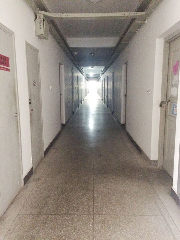 垃圾桶撤走后的公寓走道