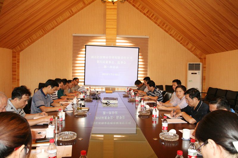 (本網訊 通訊員江巧玲)7月10日下午,湖北億優物業管理有限責任公司第四屆董事會、監事會第一次會議在公司三樓會議室召開,董事朱其敬、陳軍、宋健、聶春田、梅光球、黎元奎、戴順斌,監事王水斌、劉成云、楊守平、廖挺出席會議,監事王立俊因工外出委托呂學斌參加會議,公司總經理來靖德、副總經理陳武列席會議。會議由湖北經濟學院黨委常委、副院長吳顯富主持。