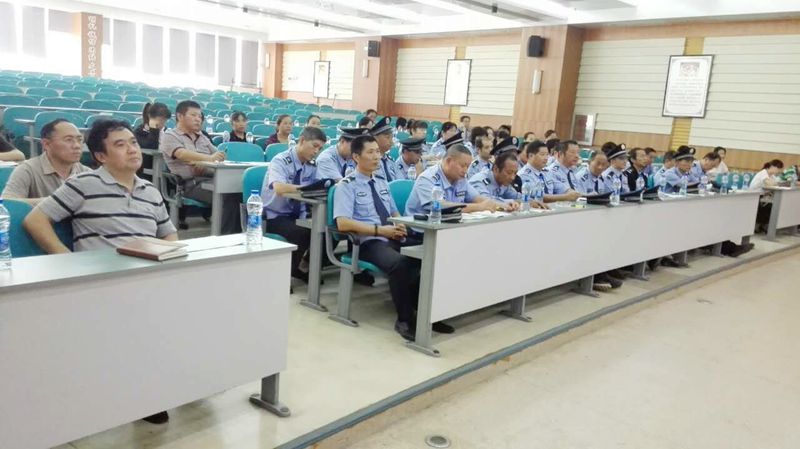 在秩序維護(hù)員培訓(xùn)會上,史見海警官帶領(lǐng)所有秩序維護(hù)員一起解讀了《保安服務(wù)管理條例》,結(jié)合自身從警經(jīng)歷,生動形象的闡述了秩序維護(hù)工作、秩序維護(hù)專業(yè)知識的重要性;結(jié)合高校特性,通過案例解讀,講解了日常秩序維護(hù)工作及突發(fā)事件處理方法、注意事項等。