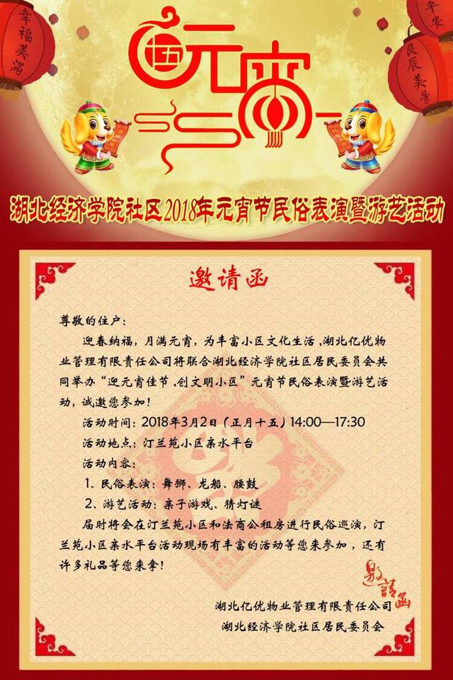 關于舉辦“湖北經濟學院社區2018年元宵節民俗表演暨游藝活動”的通知