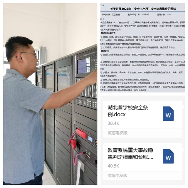 為切實落實安全管理工作,公司組織職工集中學習習近平總書記關于安全生產的重要論述及《教育系統重大事故隱患判定指南》,觀看安全生產教育片,進一步強化安全意識,明確工作要求。質量管控部牽頭開展公司安全隱患大排查,重點聚焦畢業生離校期間的安全風險,實施專項綜合巡查,及時維修各類故障安全設施設備,深入排查并消除潛在風險點,確保隱患早發現、早處理。通過電子顯示屏、工作群等渠道,廣泛宣傳安全生產知識及相關政策法規,進一步提升職工的安全意識和應急能力,為安全生產筑牢思想防線。