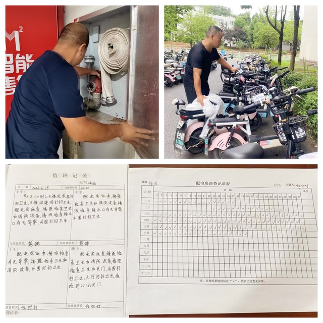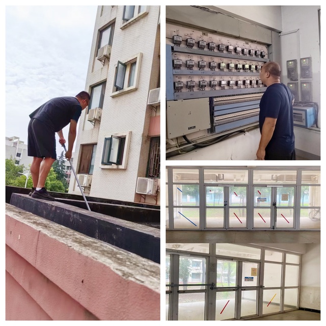 公寓服務部注重細節管理,通過一系列常態化措施,全力守護學生公寓的安全與整潔。定期開展消防水壓檢查,確保消防設施正常運行;持續清理樓棟內的“小廣告”,維護樓道環境整潔;規范電動車停放秩序,暢通消防疏散通道;加強天臺雜草清理工作,消除安全隱患;廣泛告知學生及時清理晾曬衣物及空調外機物品,避免雜物堆積影響安全與衛生。