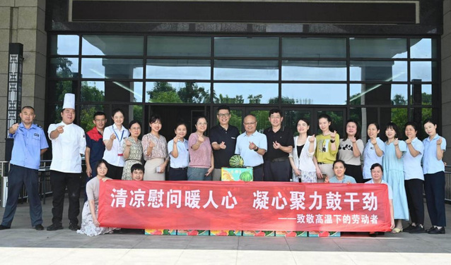 烈日炎炎,熱浪滾滾,為關(guān)心職工身體健康,營(yíng)造良好工作氛圍,7月15日上午,公司工會(huì)精心組織開(kāi)展了2025年度“夏日送清涼”活動(dòng)。公司黨總支書(shū)記嚴(yán)俊華帶隊(duì),副總經(jīng)理張奎、副總經(jīng)理兼工會(huì)主席胡冰、總經(jīng)理助理高利霞分別前往汀蘭苑小區(qū)客服中心、竹苑4棟學(xué)生公寓維修辦公室、楓苑1棟學(xué)生公寓及篤行樓開(kāi)展夏日送清涼活動(dòng),為在高溫下仍堅(jiān)守崗位的一線(xiàn)職工送去清涼與關(guān)懷。