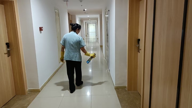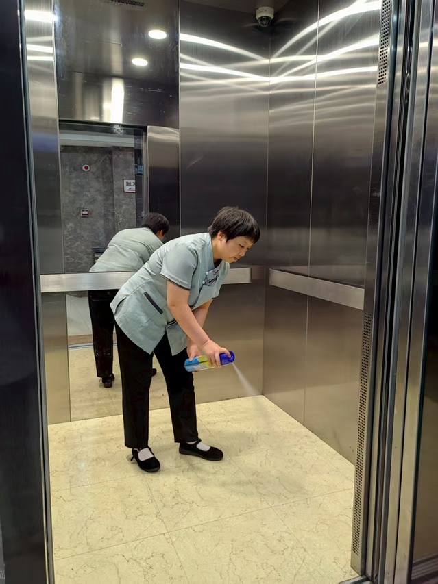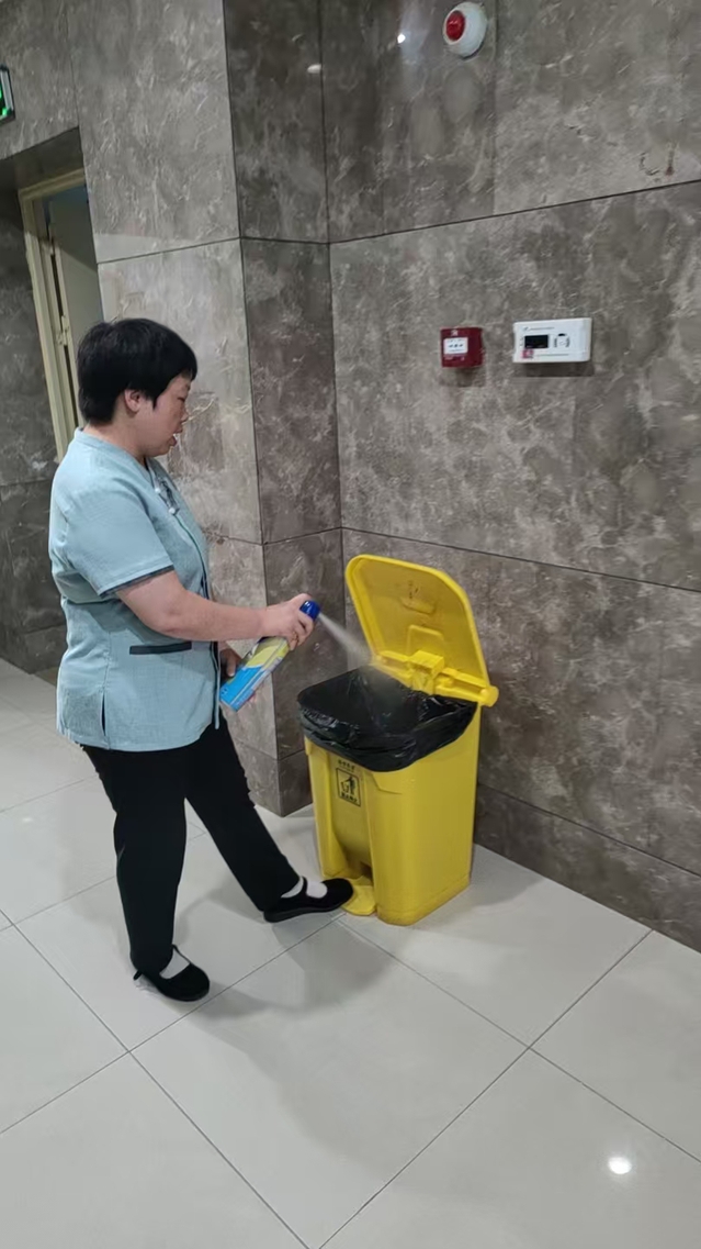 針對基孔肯雅熱通過蚊蟲傳播的特性,中心將責任區(qū)域消殺作為防控核心,對樓道、會議室、大廳、餐廳等人員密集場所實施高頻次消殺作業(yè),確保不留防控死角。為強化防控效果,中心還對電梯轎廂、衛(wèi)生間等重點區(qū)域?qū)嵭忻咳障麣⒅贫龋攸c清潔電梯按鈕、門把手等高頻接觸部位,最大限度降低病毒傳播風險。結(jié)合愛國衛(wèi)生運動,中心同步開展環(huán)境衛(wèi)生整治行動,組織人員疏通堵塞排水溝、及時清理外圍枯枝落葉,從源頭上消除蚊蟲滋生環(huán)境。