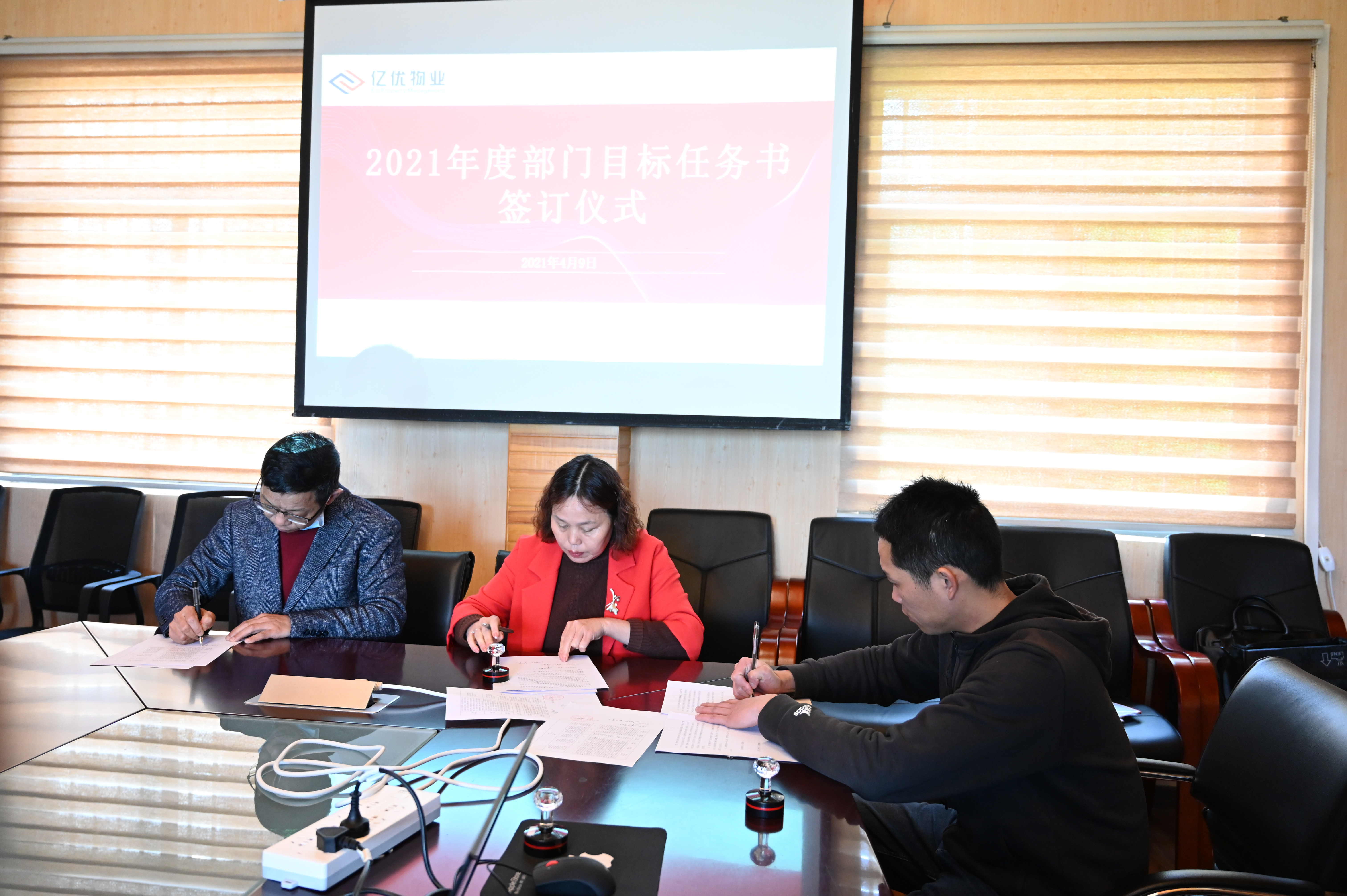 本網訊(通訊員 易茗)為進一步落實好公司2021年度目標任務,推進目標到位、責任到位。4月9日上午,公司總經理來靖德、黨總支書記王水斌在三樓會議室與各部門正職、黨支部書記簽訂《2021年部門目標任務書》、《2021年安全綜合治理目標管理責任書》、《2021年基層黨支部黨風廉政建設責任書》。