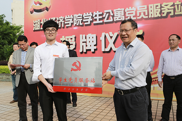 溫興生為學(xué)生黨員服務(wù)站授牌。