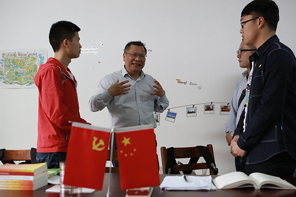 溫書記在黨員服務(wù)站與學(xué)生黨員親切交談