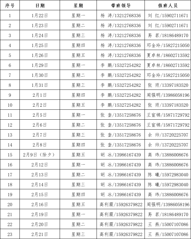 (三)中層副職及以上管理干部離開武漢市須向公司總經(jīng)理報告,確保手機暢通;各單位其他崗位職工離開武漢市須向單位主要負責人報告,確保手機暢通;各單位需服從公司統(tǒng)一部署,如遇學校和公司有重大緊急事項,應服從安排,隨時返崗。