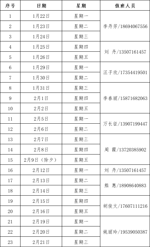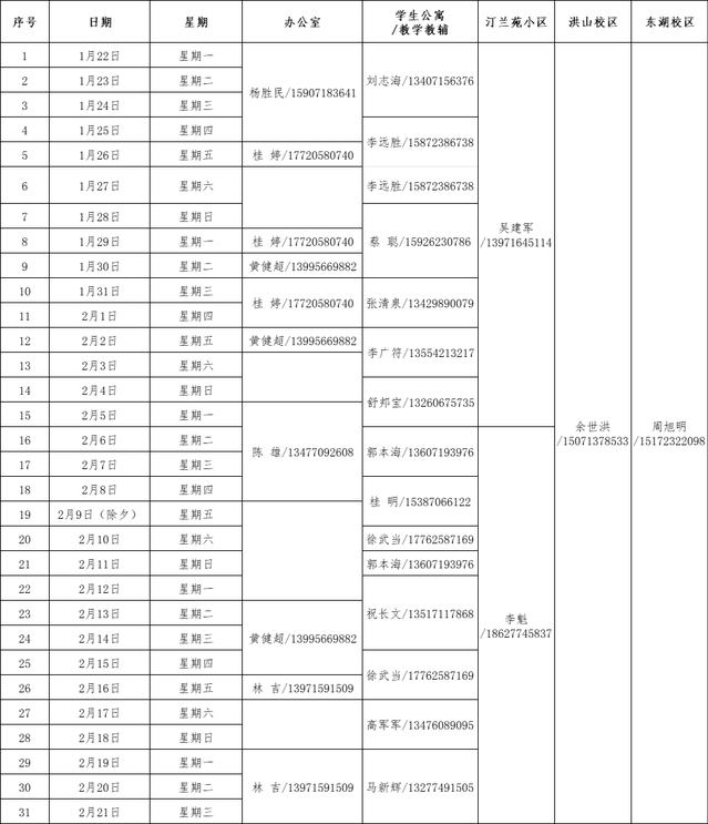 一、行政總值班安排(值班電話:81973958)