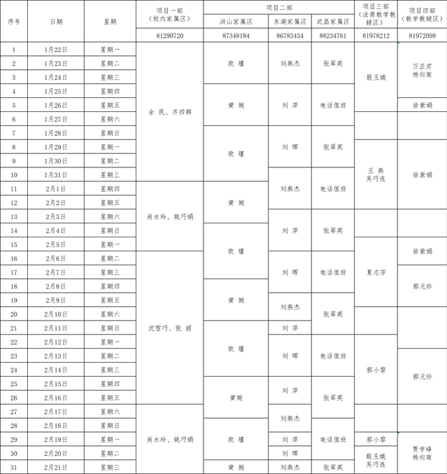 三、公寓服務部值班安排(值班電話:81973924)