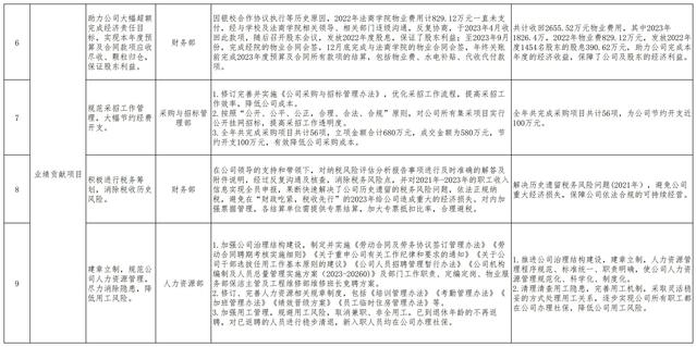 根據《湖北億優物業管理有限責任公司年度目標責任管理辦法》有關規定,結合公司2023年目標責任考核結果,經公司黨政聯席會議研究決定,公司2023年發展貢獻業績項目共12項,其中突出貢獻項目3項、業績貢獻項目9項,現予以公示:
