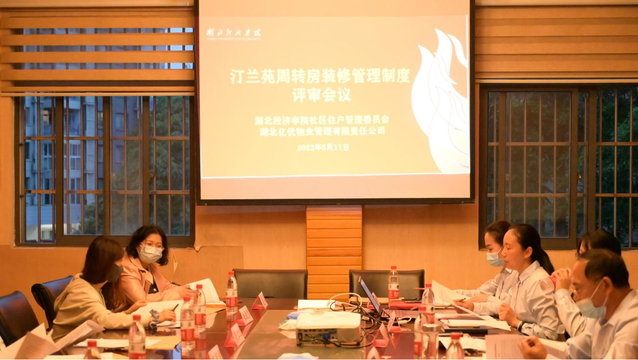 本網(wǎng)訊(通訊員 姚巧娟)2022年5月11日晚,汀蘭苑周轉(zhuǎn)房裝修管理制度評審會議在公司三樓會議室召開,公司黨總支書記王水斌帶領(lǐng)總經(jīng)理助理高利霞、物業(yè)服務(wù)部經(jīng)理賈學(xué)峰、汀蘭苑項(xiàng)目部項(xiàng)目經(jīng)理張麗及有關(guān)工作人員,同湖北經(jīng)濟(jì)學(xué)院社區(qū)住戶管理委員會14名樓棟長一起,共議汀蘭苑周轉(zhuǎn)房裝修管理制度,共商汀蘭苑小區(qū)裝修管理。